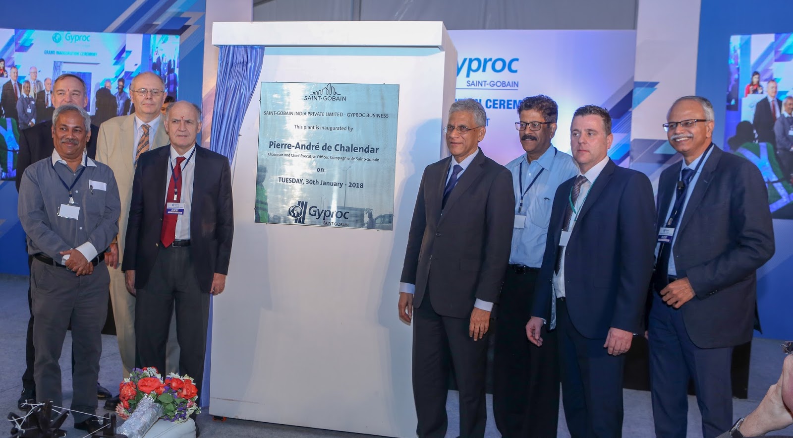 Jhagadia, 31 January 2018: Pierre-André de Chalendar, Chairman and CEO of Compagnie de Saint-Gobain inaugurated India’s largest plasterboard manufacturing plant. Located in Jhagadia, Gujarat, this is India’s largest gypsum based plasterboard manufacturing facility till date with an annual capacity of 30 million square metres. Gyproc India has three existing plants in India located in the states of Haryana, Maharashtra and Karnataka.